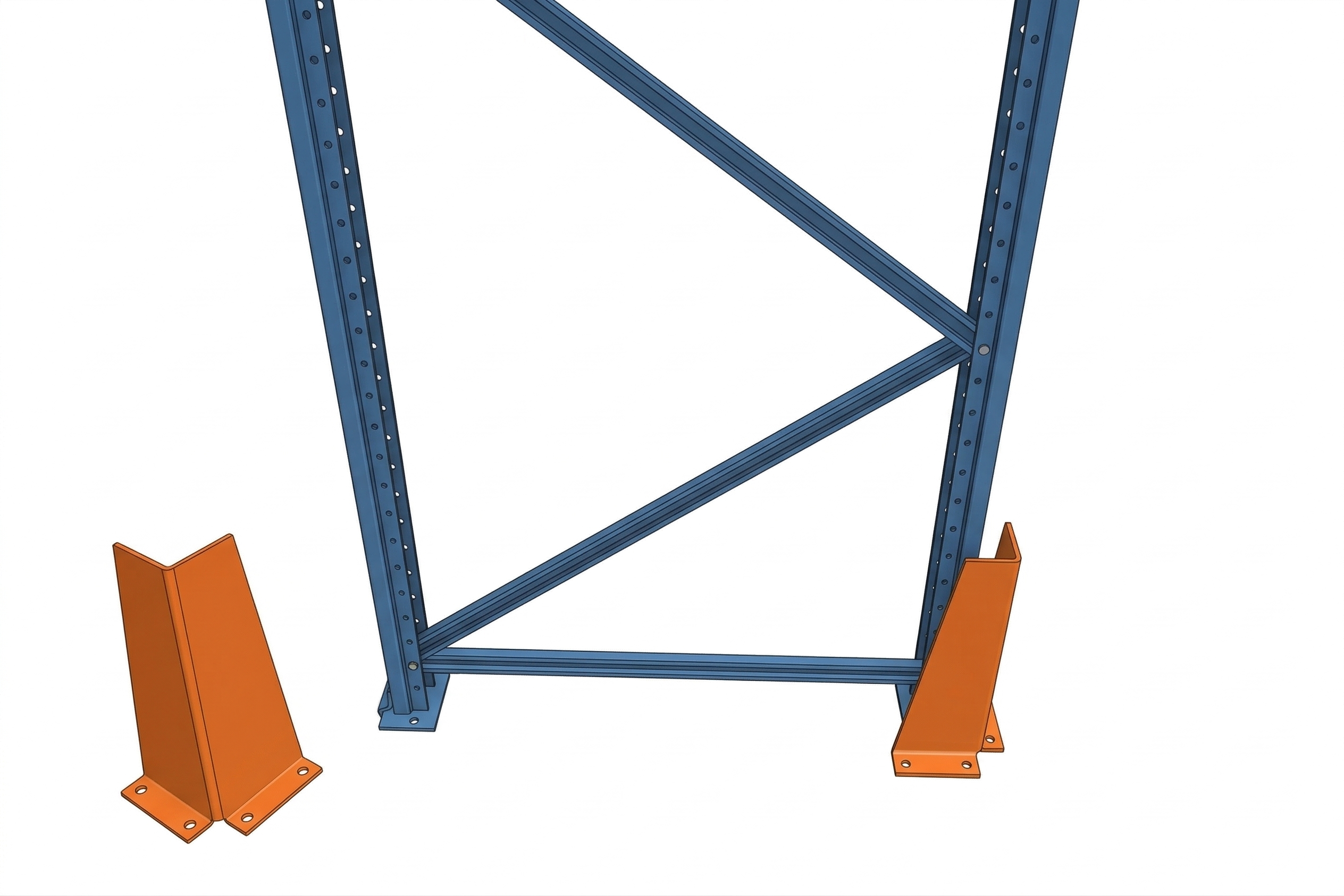 Zware kwaliteit stalen aanrijdbeveiliging voor effectieve bescherming van stellingstijlen. Signaaloranje afwerking voor optimale zichtbaarheid.